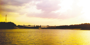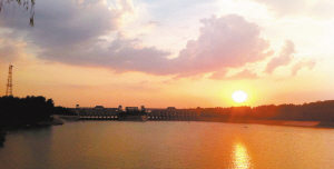 夕阳西下,美丽的沙颍河碧波粼粼。在天边云彩的映照下,周口大闸显得金碧辉煌,格外迷人。