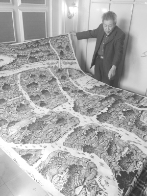 78岁的葛庆亚说,由于视力大不如前,他用了4个月,才把周口老城区全貌画完。