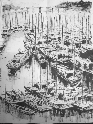 “为纪念毛主席‘一定要把淮河治理好’题字25周年,我市摄影人士拍摄了一组淮河流域的照片。我根据这组照片,加上之前的写生画稿,手绘了周口老城区全貌,涵盖周口八景,取名‘昔日家园’,希望这幅画能唤起周口人共同拥有的一段记忆。”