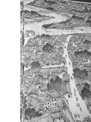 葛庆亚对上世纪六七十年代的周口景致印象最为深刻。“那时候,我二三十多岁,平时喜欢走街串巷,观察生活,到处写生。”让葛庆亚真正做出用画笔画出周口老城区全貌决定的是,1974年他乘坐飞机拍摄的一组周口老城区的照片。