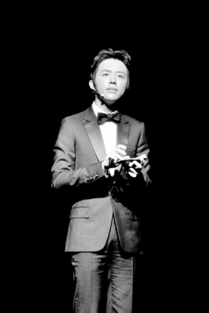 李云迪登台用乐视手机弹出了钢琴的旋律,感叹科技的力量,“今天我才发现,科技也可以如此艺术”。(吴平摄影报道)