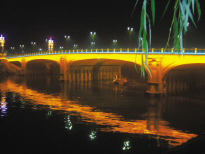 沙颍河周口市区段的八一大道桥是周口市中心跨沙颍河南北连接城市主干道八一大道的一个重要节点,承载着市民通行的重要功能,该桥最早修建于1968年11月,1969年12月投入使用的周口市区八一大道桥(原胜利桥)在服役41年后的2010年7月出现险情,经市政府批准全线封闭断行。八一大道桥的封闭断行给广大市民的出行带来极大不便,为此,市委市政府于2010年10月启动了新桥建设项目。