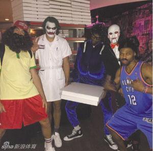 北京时间11月1日,美国时间正值万圣节,NBA球星们携妻带子打扮成各路鬼怪,扮相惊悚。