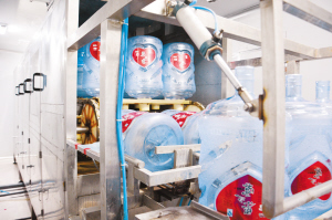为保障市民喝上安全、放心的桶装水,周口乐之霖饮品公司引进先进桶装水灌装机,集消毒、冲洗、套盖、压盖和送出于一体,将洗瓶、灌装和压盖全过程在封闭状态下进行,有效地防止纯净水或矿泉水在灌装过程中可能发生的二次污染,做到真正的无菌灌装。记者 付永奇 摄