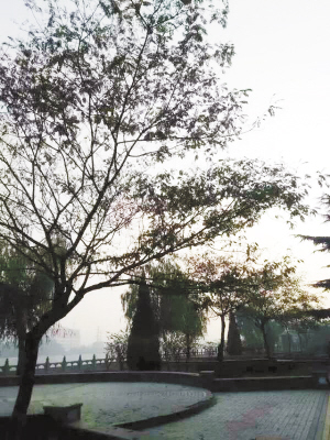 深秋的公园,小草黄了,叶子红了。特别喜欢下着小雨的早晨,一切都是清新的。公园里的长椅寂寞地躺在那里,上面满是小水珠。水面上,几条小渔船静静地泊在那里。对岸的树、远处的高楼、雄伟的大桥,都仿佛海市蜃楼一般,被这轻柔的薄雾温柔地揽在怀里。因为有了美丽的滨河公园,沙颍河显得愈发活力四射、朝气蓬勃;因为有了滨河公园,市民有了休闲健身的好去处。