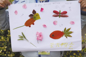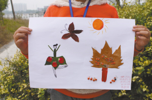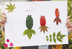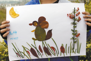 虽然天气寒冷,可阻挡不住我的热情,树叶拼图活动真好玩!(辅导老师:樊琰琰)