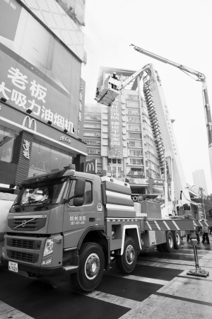 11月8日,河南省消防总队官兵进行高层建筑人员救援演练。当日,在第25个“119”全国消防日来临之际,河南省在郑州市二七广场举行2015年“119消防宣传月”活动,将开展为期一个月的“参与社区消防、建设平安家园”系列宣传活动,动员全社会重视消防、关注消防、参与消防,切实提高全民消防安全素质,预防和减少火灾发生。