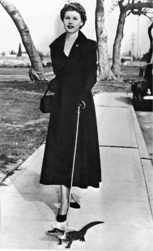 牵着鳄鱼的女人,摄于1950年。