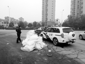本报讯 11月9日上午,一辆满载面粉的小货车行至周口大道与兴旺路交叉口时,20多袋面粉掉落在地。路过此处的市公安局特警支队3位民警见状,忙把警车停在掉落的面粉旁,并打开警灯和应急灯,保障掉落货物和过往车辆的安全(如图)。