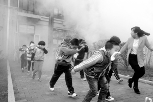 11月9日,青岛高新区红岛中心小学举行灭火逃生疏散演练。