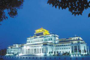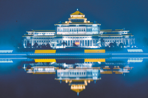 白天,文化艺术中心在蓝天白云的映衬下,显得高大雄伟;夜晚,华灯初上,她犹如一颗璀璨的夜明珠。特别是站在对面的和谐广场上看她在水中的倒影,更加漂亮迷人。