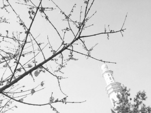 在映着白塔开放的群花之中,我独爱梅。
