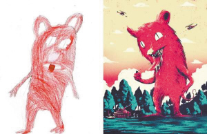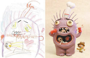 “怪物项目”在美国德克萨斯州进行,孩子们画一只怪物,艺术家就以这幅画为灵感创作。