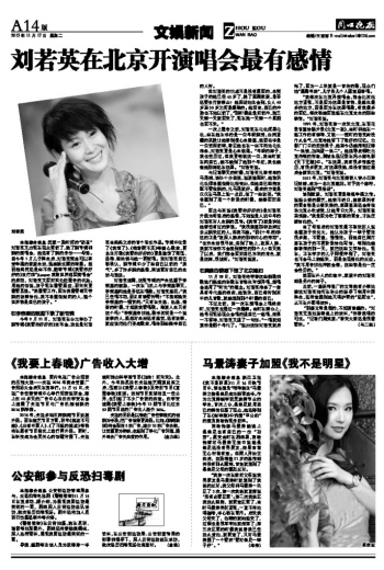 “那篇文章是假的,不知道谁编的。”刘若英无奈地指着桌上的饮料,“你看我喝的可乐。”记者们则笑道:“看来大家还是很需要你。”(马二妮)