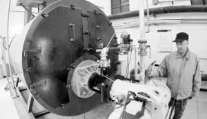 门头沟区水峪嘴村的供热管理人员在检查村里的集中供热燃气锅炉运行情况(11月17日摄)。