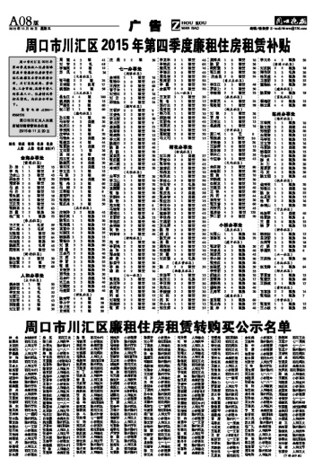 周口市川汇区2015年第四季度廉租住房租赁补贴