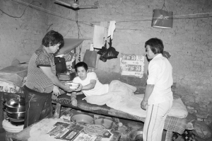 “就是亲娘也不一定有俺两个嫂子照顾得好,这辈子我值了。”2011年,周口晚报记者采访王存邦时,虽然他的活动范围从不超过1.2米宽、1.8米长的小板床,甚至连坐都不会。但是,在两位嫂子的精心照料(如图)和亲情感化下,王存邦显得精神愉悦、思想豁达,身体也很健康。