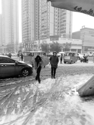当日14时30分许,周口晚报记者来到七一路与大庆路交叉口,看到路上大小车辆的车速明显比晴天时要慢,步行或骑摩托车的市民都显得小心翼翼(如图)。
