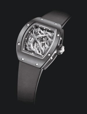 此次表展带来年初SIHH推出的出神入化的玉兰花飞行陀飞轮,还有稍微早些时候推出售价大概在480万人民币型号为RM69的情色陀飞轮腕表,腕表的命名开宗明义地阐发本设计的宗旨:将最隐秘的意图公之于世。这枚高级制表的杰作将以充满趣味性的演绎,让其佩戴者心醉神迷,在一种娱乐的情境下,他们将乐于炫示某些语句,部分词藻还能产生引人遐想的乐趣。