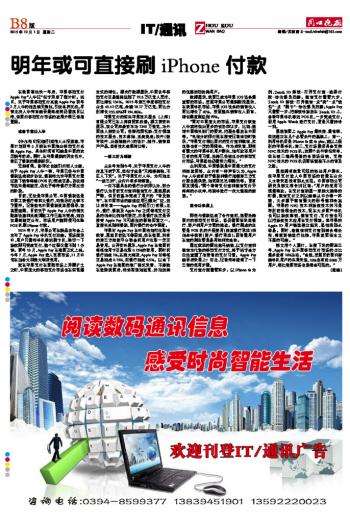 明年或可直接刷iPhone付款