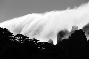 黄山现“瀑布流云”奇观