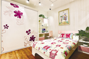 儿童房通常面积不大,房间里的家具即成为最大的装饰品,因此挑选家具时更要注重功能性与装饰性相结合,床、衣柜和书桌椅成套搭配或定制,更能形成统一风格,效果出彩。该套儿童房案例,第一眼就可以看出,这个是专为小女生准备的卧室,采用了通常小女生都非常喜欢的粉红系列风格,粉红与白色的经典配色,加上风格活泼的床品,以及对开门衣柜上时尚、亮丽的装饰花朵图案,都令人感受到女孩子的青春气息。(黄凯泓)
