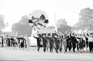 12月2日,老挝万象举行盛大群众游行和阅兵式,庆祝老挝建国40周年。