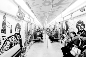 12月2日,市民乘坐沈阳地铁二号线“国之长子”列车车厢。