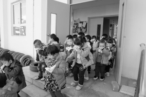 12月3日下午15时,在周口莲花幼儿园内,随着消防警报的响起,该园一场消防疏散演练活动正式开始。各班教师迅速按紧急预案的疏散线路,带领幼儿拿起湿毛巾捂住口鼻,手扶楼梯栏杆,弯腰小步快走,迅速且有序地撤离到了安全地带。通过此次消防演习活动,进一步提高了全园师生的消防意识和逃生技能,增强了孩子的自我保护意识,真正把消防安全工作落到实处。图为孩子们在老师的带领下迅速、有序地撤离到安全地带。(贾红娜 摄)