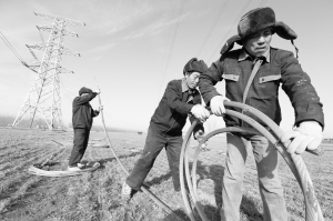 近日,在西华县大李庄乡220千伏邵章线路扩容改造现场,施工人员冒着严寒紧张施工。220千伏邵章线是省网向周口输送电力的重要线路,投运于1988年,线路输送容量较小,已不能满足供电需求。周口供电公司投资1500万元,于今年9月起对该线路进行扩容改造,预计本月10日竣工投运。投运后,将进一步增强周口的供电能力,提升电网运行可靠性,为电网安全度冬夯实基础。通讯员 张岩 魏树林 摄