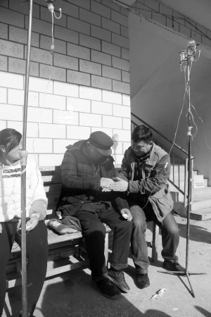 12月4日,周口晚报记者在汲水乡卫生院见到张广玉时,他不时用双手揉搓着父亲僵硬的双手。
