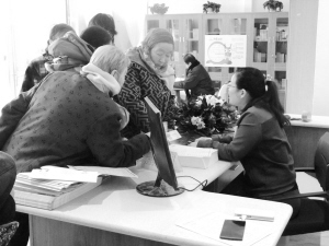 在养老站的接待处,五六位老人在认真听工作人员介绍养老站的各种便民贴心服务(如图)。在接待处右侧,三四位老人坐在休闲书吧里看书。休闲书吧里有30多类3000多册适宜老年人阅读的书籍。沿接待处左侧向里走,第一间是娱乐室,8位老人围成两桌打麻将,旁边还有几位老人在下象棋;第二间是绘画室,三四位老年绘画爱好者围成一桌同绘牡丹,墨香四溢;第三间是剪纸室,四五位老太太围在桌旁,在工作人员的帮助下学习剪窗花;第四间是理发室,来自周口市区几家理发店的志愿者为老人们免费理发;第五间是上网室,电脑已经装好,等接通宽带后,老人们即可网上“畅游”;第六间是健身室,两位打乒乓球的老人玩得正酣。