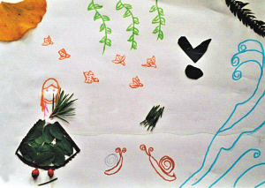 小记者王乐言手工制作树叶粘贴画《初春》