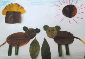 小记者高箐手工制作树叶粘贴画《羊儿吃草》