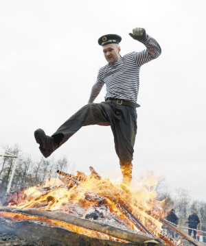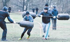 当地时间2015年12月6日,白俄罗斯明斯克,Bison Race障碍极限赛跑运动当日举行,参赛者需克服种种障碍,赢得比赛,包括跳篝火、跨越河流、踩木桩……寒冬中“战斗”气势丝毫不减,场面激烈。
