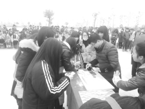 老师们虽然都想在10分钟内包出质量高、数量多的饺子,但有些老师由于紧张,动作比较慢,一旁的学生就大喊:“老师,加油!”“老师,别揉面了,快点擀饺子皮!”“老师,饺子馅别塞那么多!”加油声、欢笑声在学校上空回荡。
