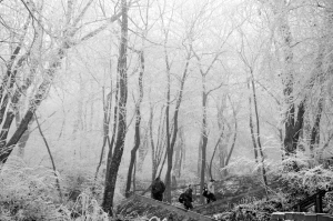 12月13日,湖北省武当山降下大雪,冰雪将道教圣地装点得银装素裹、分外瑰丽,同时出现的雾凇奇观更给游客带来独特的视觉享受。