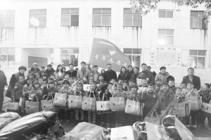 12月15日,团市委与漯周界高速公路有限责任公司联合开展2015希望工程“温暖冬天”活动,为商水县张庄乡大郭村40多名留守儿童和贫困老人发放了价值两万元的羽绒服、棉大衣等物品。 拿着礼品,老人和孩子都非常高兴。