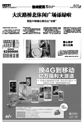 大庆路桥北休闲广场添绿啦