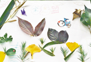 小记者宋思萌手工树叶粘贴画《美丽的秋日》