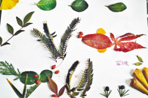 小记者王恒瑞手工树叶粘贴画《秋日》