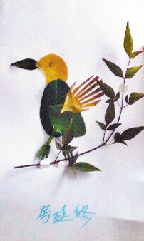 小记者房延修手工树叶粘贴画《停在枝头的鸟儿》