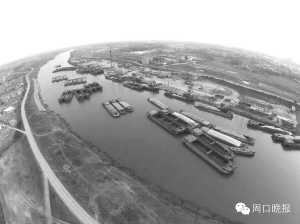 前几天,周口港的运输场面一片红火,上百艘货船停泊在港口水域,码头上运输粮食的车辆来往不断。