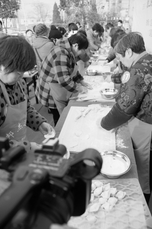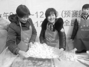 12月20日上午,在包饺子大赛决赛中,70号选手张玉琴和张贵琴这对亲姐妹搭档,在10分钟内包出147个饺子,夺得冠军(如图)。