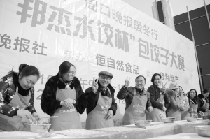 2003年12月22日,冬至,《周口晚报》创刊。创刊号头版的包饺子图片,有力诠释了周口晚报“办市民最喜爱的报纸”的宗旨,祥和的图片反映了豫东习俗,也体现了周口晚报人与市民一家亲。因此,这注定了《周口晚报》与冬至、饺子结下了不解之缘。12年来的每个冬至,在晚报人的骨子里都有一股暖暖的感动。所以,本报今年的包饺子大赛主题为“周口晚报暖冬行”。经过一系列的包饺子比赛和送饺子进养老院、送饺子进社区、送饺子给特困家庭、送饺子给环卫工,这个冬天晚报与市民同暖。