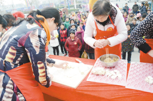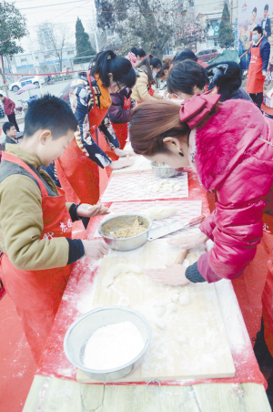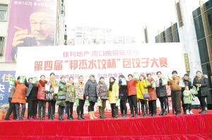 本报讯 12月19日,佳利地产、周口晚报暖冬行——第四届“邦杰水饺杯”包饺子大赛社区预选赛第六场在佳利广场隆重举行,吸引了百余名选手参赛。本场预选赛高手如云,冠军组选手在10分钟内最多包出了104个饺子。