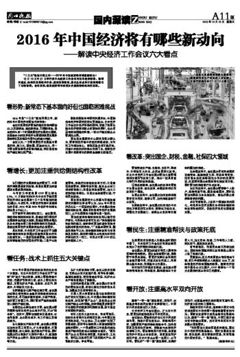 2016年中国经济将有哪些新动向