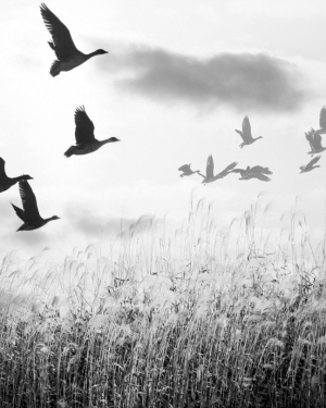天上响起几声大雁的鸣叫,我抬头急切地寻找,雪花迷蒙了我的视线,雁声渐渐远去。我的老乡们,在棉田里排成大雁的行列,身影越走越远。