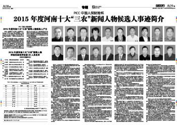 2015年度河南十大“三农”新闻人物候选人事迹简介