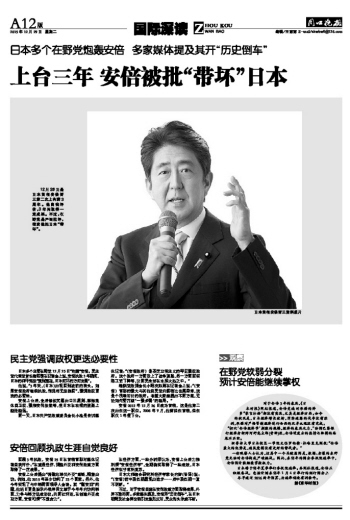 上台三年 安倍被批“带坏”日本